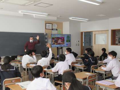ALTのJ先生が準備してくださった様々な国のクリスマスについてのクイズに取り組んでいます。