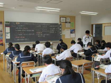 12月13日(火) 1年生 社会 アメリカ合衆国 公開日 2022/12/13 更新日 2022/12/13 1学年 アメリカ合衆国の特色について学習しています。 地球温暖化の話題も出ています。真剣にノートにまとめています。