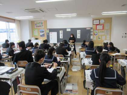 久しぶりの書道です。中には、1年ぶりに筆を持つ生徒もいます。