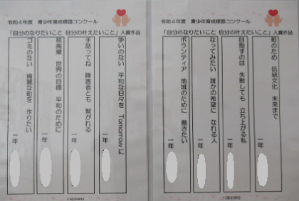 12月17日(土) 1年生 青少年育成標語コンクール 入賞