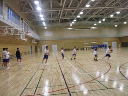 体育館では、男子バスケットボール部、バレーボール部が元気に活動しています。