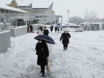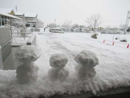 徒歩通学生の皆さん、歩道に雪が積もって狭くなっていたり、車道から車が滑って歩道に乗り上げたりすることが予想されます。十分に気を付けて、登校してください。また、横断歩道も凍結し、ツルツルになっていました。転ばないよう、お腹に力を入れて、一歩一歩踏みしめながら歩きましょう。