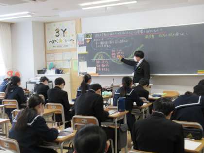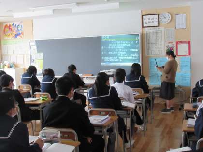 写真上は、英語の授業の様子です。仮定法について学習しています。