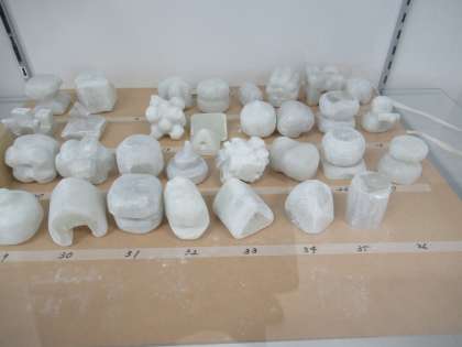 あんなに固くて四角かった石が、なんと!こんなに曲線の美しい様々な作品に仕上がっています。