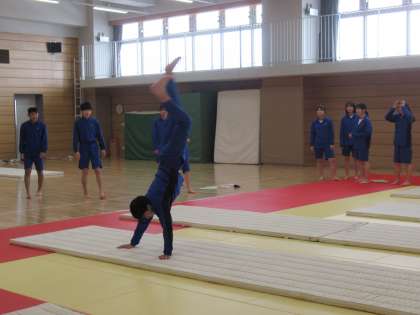 12月20日(火) 3年生 保健体育 マット運動最終日 公開日 2022/12/20 更新日 2022/12/20 3学年 最終日です。最後の最後まで技にチャレンジしています。なんとかできるようになりたいという必死感があります。練習に夢中です。