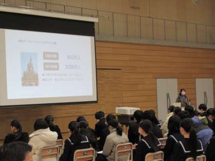 講師は、元ディズニーキャストの川田様です。リピーター率97パーセントの「夢の国」ディズニーランドで、ディズニーキャストとして働いておられた方です。「働くこと」はもちろんのこと、おもてなしの心、心遣いについても学ぶことが多い素晴らしい講演でした。