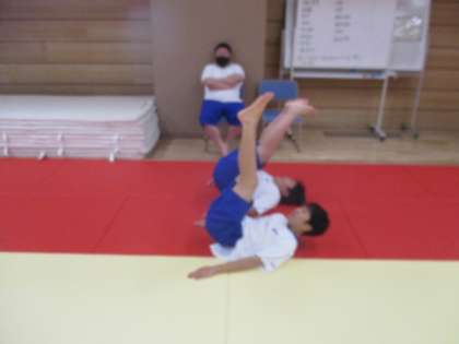 柔道部は後ろ受け身の練習をしています。何事も基礎基本!トレーニングが基本です。