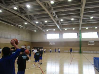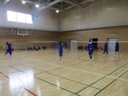 体育館は一段と寒いですが、生徒は活発に動き回り、身体を温めています。
