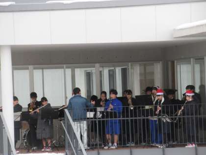 なんと!「学びのニワ」に登場!懇談会中、中庭は素敵なクリスマスソングが響き渡っていました。