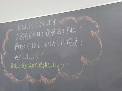 教室の黒板に温かいメッセージが書いてあります。