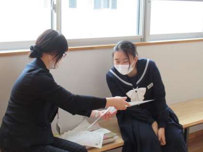 各教室で、一人一人通知票を渡し、2学期の頑張りを伝えました。