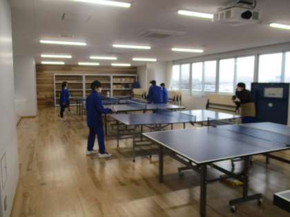 卓球部は、集会室で活動を始めました。基礎練習を行っています。