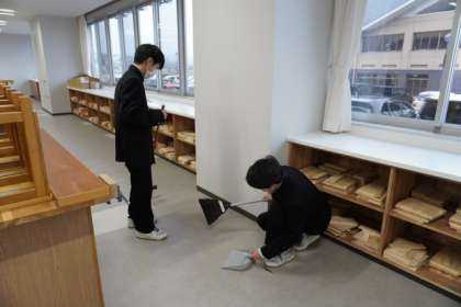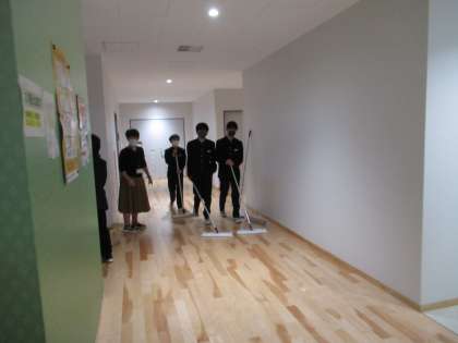 まずは、クラスメイトと協力して清掃を行っています。初清掃です。