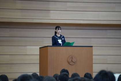 2年生の代表生徒は、最高学年になるにあたり、自分の意見をしっかりともち、思いを伝えることができるようになること、勉強を頑張ることの2つの決意を述べました。