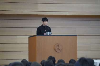 3年生の代表生徒は、義務教育最後の学期を悔いのないよう、当たり前のことをしっかりとしていきたいと述べました。