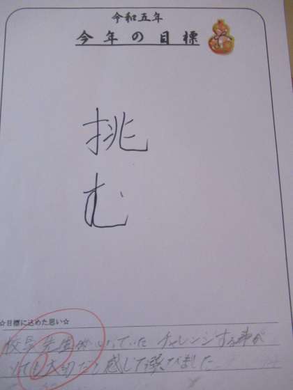 失敗を恐れず、チャレンジしましょう。始業式の校長先生の話から「挑む」を選んだ生徒もいます。
