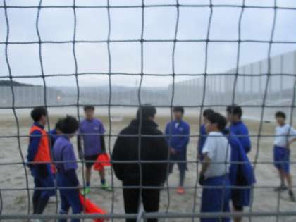 グラウンドでのミニゲームの後にミーティングをしているところです。