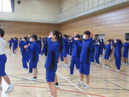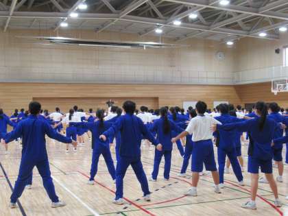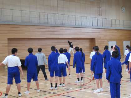 1月13日(金) 1・2年生 保健体育 ダンス教室 公開日 2023/01/13 更新日 2023/01/13 2学年 ダンス講師のMARIE先生をお招きして、1・2年生合同のダンス教室を行いました。 ダンスコンテストの課題ダンスを教えていただきました。 短い時間で振り付けを覚えて、流れを全てできるようになった生徒に感動しておられました。八尾中学生の強みがまた1つ増えましたね。 生徒は、ノリノリで踊っていました。