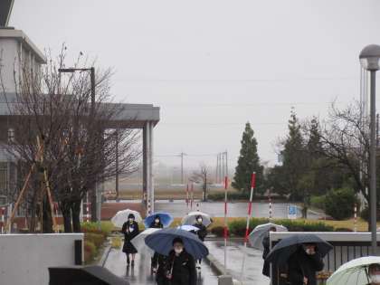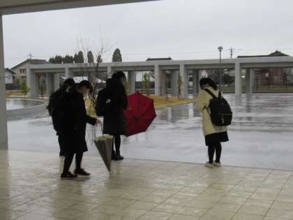 生徒玄関前が雨で濡れないようにという気配りが嬉しいですね。ありがとう。当たり前のようで、なかなかできないことです。