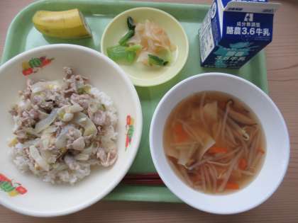 1月16日(月) 今日の給食は? 公開日 2023/01/16 更新日 2023/01/16 八尾中学校のページ 今日のメニューは、 1 塩だれ豚丼 2 牛乳 3 かぶの色どり 4 ワンタンスープ 5 バナナ です。 ニンニクの風味が食欲をそそりますね。栄養満点です。