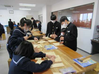 完成した生徒もいれば、苦戦中の生徒もいます。教え合う姿が素敵です。