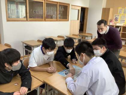 スゴロク形式で、英会話を楽しみました。1年生が中心ですが、知っている表現を駆使してALTのJ先生や友達と会話しています。