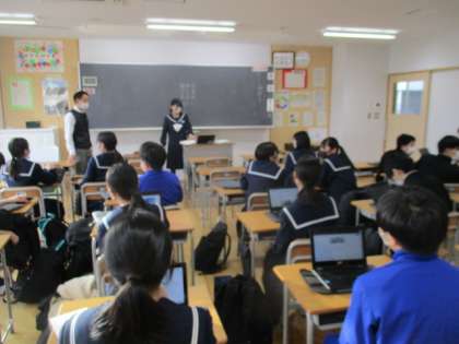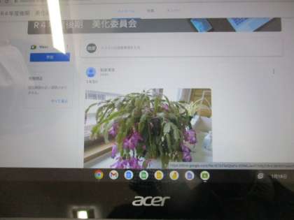 来月の活動について話し合っています。chromebookを利用し、活動の様子を委員全体で共有しています。