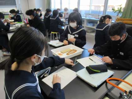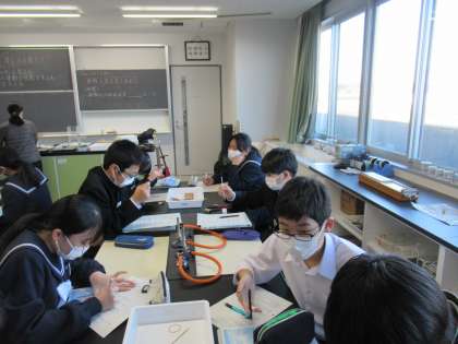 1月19日(木) 1年生 理科 力のはたらき 公開日 2023/01/19 更新日 2023/01/19 1学年 スポンジ、磁石、、、等に触れながら、「力のはたらき」について学習しています。 押さえたり、動かしたりしながら気付いたことをレポート用紙に書き込んでいます。