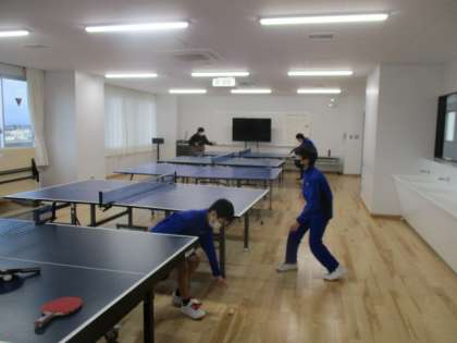 基礎打ちに励んでいます。練習が終わると、卓球台をエレベータで1階へ移動させ、明日体育館での練習に備えています。お疲れ様!