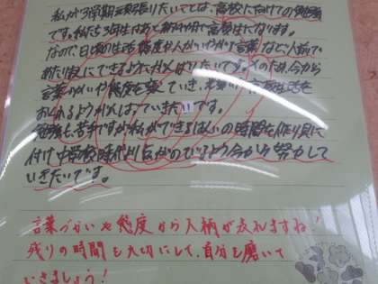 ほぼ全員が「勉強」そして、残りの中学校生活を悔いの無いように過ごすことについて書いています。