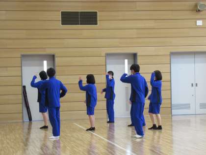 ダンス発表会直前です。生徒はグループごとに最後の確認をしています。