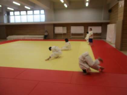 ウォーミングアップでは器械体操も取り入れています。