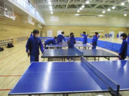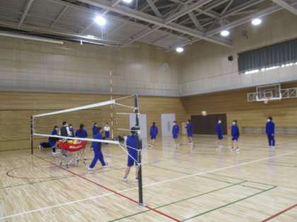 卓球部、バドミントン部、バレーボール部が活動しています。声を掛け合いながら、元気に活動しています。