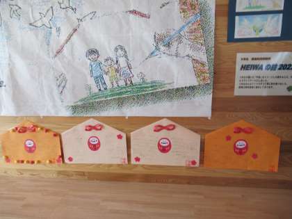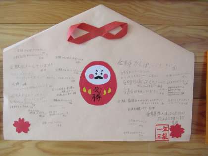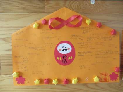 3年生の学年フロアに素敵な絵馬が飾ってあります。1年生各クラスからの贈り物です。