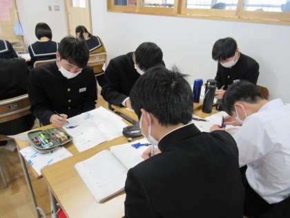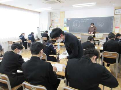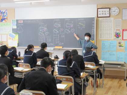 1月26日(木) 3年生 数学 三平方の定理 公開日 2023/01/26 更新日 2023/01/26 3学年 私立入試まで1週間となりました。真剣さがより一層増しています。 三平方の定理を学習しています。分からないときは、すぐに友達に相談したり、先生に教えてもらったりできるようになっています。
