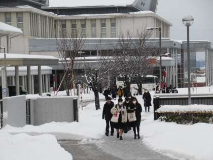 柴田理恵さんからいただいた除雪機で用務員さんが除雪してくださっているおかげで、校門から生徒玄関まで雪がなくありがたいことです。