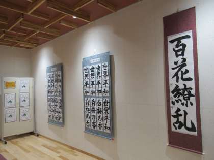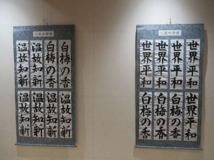 富山市小中学校書写展覧会に出品した作品が学校ギャラリーに展示してあります。