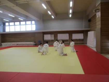 練習前のウォーミングアップの様子です。チームワークばっちりです。
