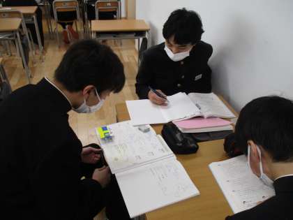 難しい問題も仲間と一緒なら心強い!教え合うことで学びがさらに定着しています。