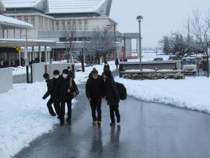 今日は、3年生が私立高校一般入試のため、1・2年生だけの寂しい朝です。