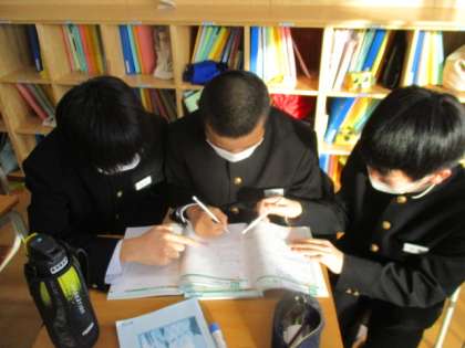 実力テストは終わりましたが、振り返りと学び合いを自主的に行っています。3年生0学期らしい光景です。
