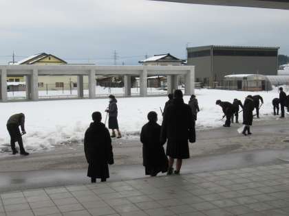 今朝の除雪当番は、1年2組です。少しでも歩きやすいようにと、クラス総出で除雪をしてくれました。ありがとうございます。