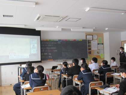 写真上は、社会科の授業の様子です。アイヌ民族について学習しています。