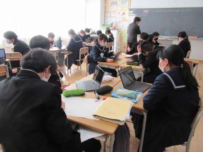 写真上・中は、社会科の授業の様子です。ウクライナ侵攻と私たちの生活の関係を考えています。