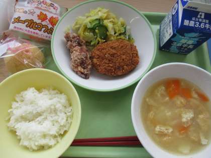 選択献立の日です。どちらにしようか迷って決めたメニューですね。