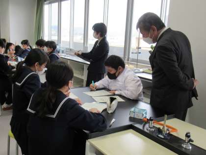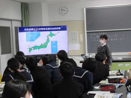 2月8日(水) 1年生 理科 火山探偵になろう 公開日 2023/02/08 更新日 2023/02/08 1学年 「火山探偵になろう」という興味深い課題の授業です。 世界の活火山の数当てクイズをしたり、日本の活火山の数と場所を確認したりしながら、ワクワクして授業に取り組んでいます。 「火山はどうやってできたのか」について話し合っています。予想を立てるのは楽しいですね。 今日は、富山市教育委員会からも初任の先生の授業を参観に来られました。