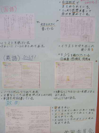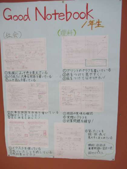 各学年の廊下に、学習委員会が作成した「Good Notebook」が掲示してあります。