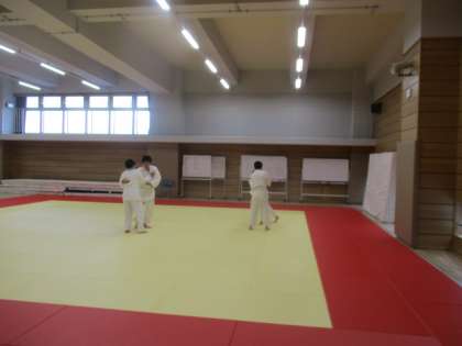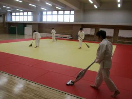 打ち込み練習の後は、丁寧に柔道場を清掃しています。