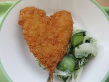 あじフライがハートの形に見えますね。