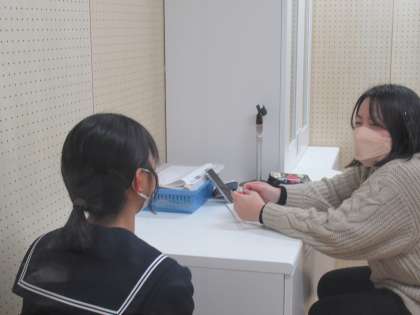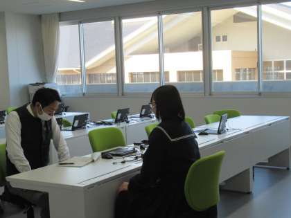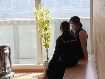 学年フロアのベンチで、学年室で、放送室で、コンピュータ室で、、、と広い校舎を有効に使って行っています。
